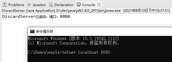 现在我们已经编写出我们第一个服务端,我们需要测试一下他是否真的可以运行。最简单的测试方法是用 telnet 命令。例如,你可以在命令行上输入telnet localhost 8080或者其他类型参数。